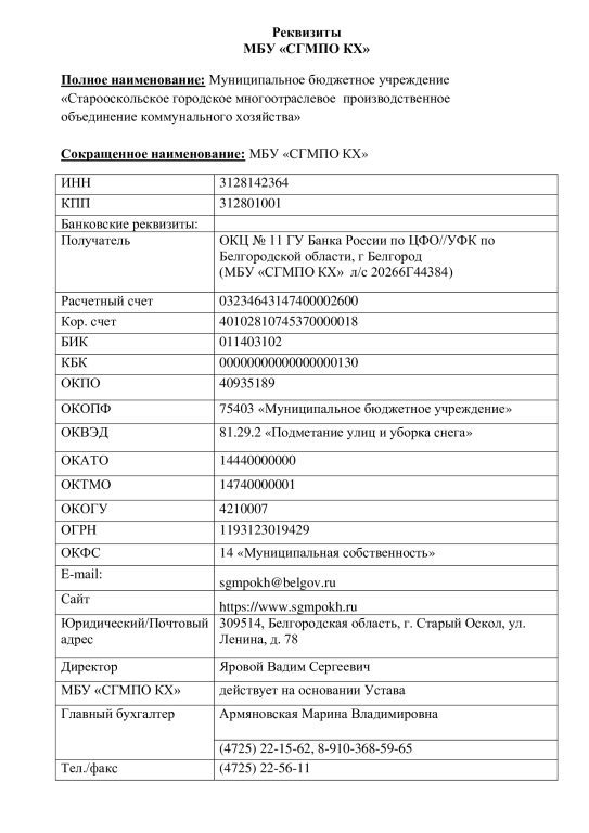 Реквизиты МБУ